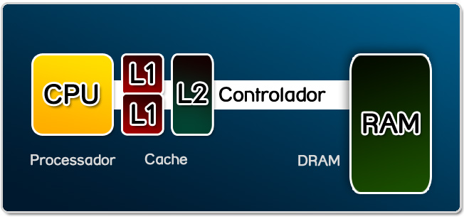 Mas com um espaço tão pequeno, o que ocorre quando o dado não é comportado? Entra em cena então o próximo nível na hierarquia de memória e de acesso (por meio do controlador de memória), que é a utilização da memória DRAM (memória dinâmica, a encontrada nos pentes que estão na sua placa mãe).
