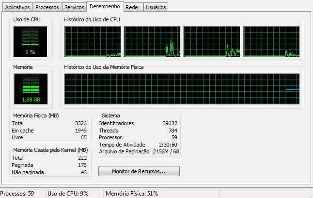 Nela que residem todos os dados abertos pelo sistema (bem como os processos que estão em atividade), como os programas e arquivos. Para conferir melhor a atuação delas, experimente abrir o gerenciador de tarefas do Windows. Na tela estão todas as taxas de utilização de memória dos programas, seguidas do total disponível em sistema.
