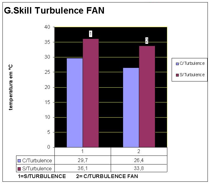 Causando uma tremenda e arrebatadora TURBULÊNCIA me em perfeita harmonia sonora. Dificilmente iremos realizar nossos overclocks com aquelas feias e bizarras fans (que geralmente são de 60mm ou 80mm que temos jogado ao fundo da gaveta), depois que testamos este acessório que já deveria acompanhar as excelentes memórias da G.SKILL por padrão dificilmente nos testes futuros verão em nossa bancada uma fan direcionada para os módulos de memória.
