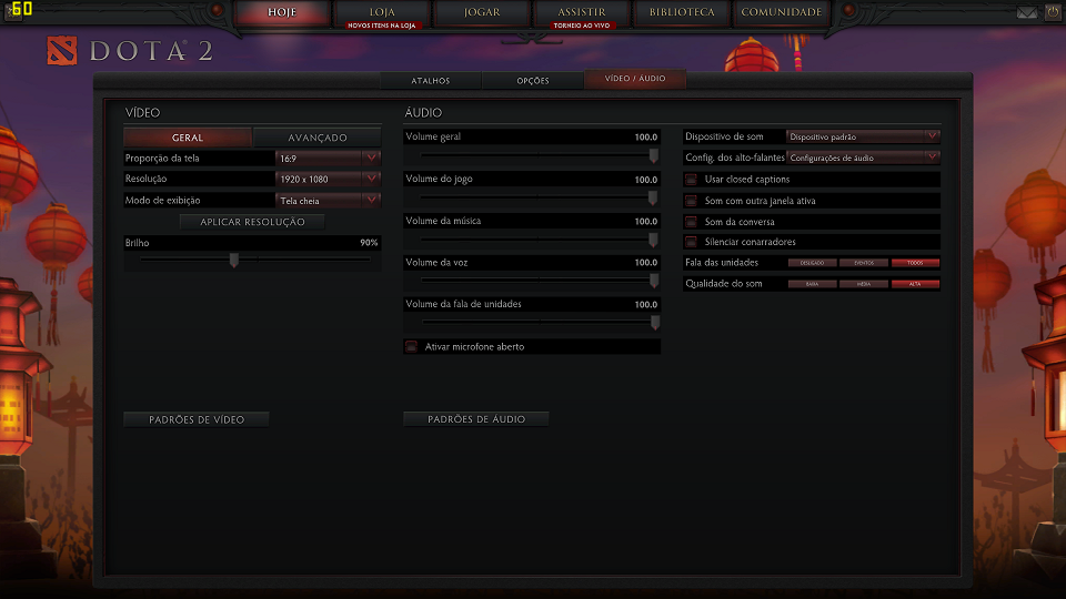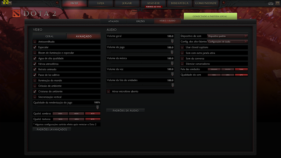 O próximo da lista foi o DOTA 2, na seguinte configuração: